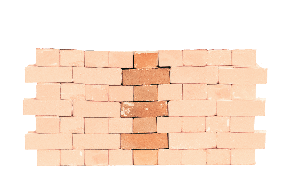 Beim Blockverband liegen jeweils die Stoßfugen der Binder und die Stoßfugen der Läufer auf einer Linie. Versatz entsteht nur durch den Wechsel von Läufern und Bindern. Das Muster wiederholt sich jede zweite Reihe.
