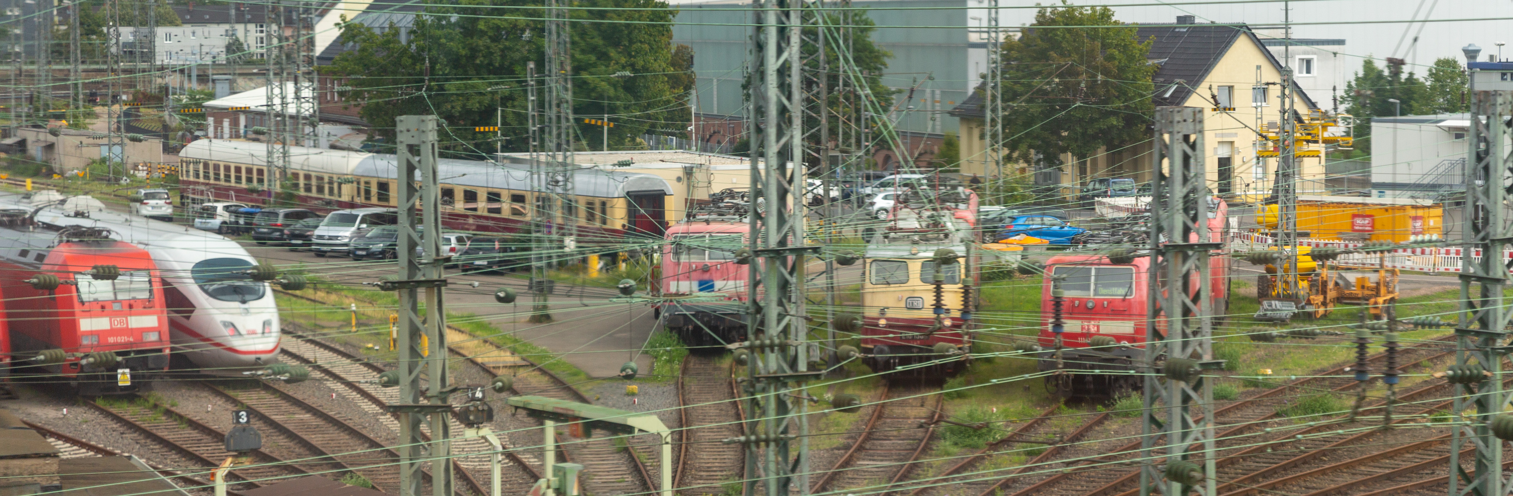 Darüber welche Farbe dieses schmucke Stück trägt, äußere ich mich lieber nicht noch einmal. Die Bundesbahn kannte für Lokomotiven schneller als 120km/h die Farben »Kobaltblau« und »Stahlblau«, meiner Meinung nach sieht das hier auch nach Kobaltblau aus, allerdings kenne ich diese Farben hautpsächlich von Druckerzeugnissen und Internetfotos, wo Farbwiedergabe ja so eine Sache ist. Das Internet sagt, diese Farbe wäre entweder einfach »Blau« oder »Saphirblau«, beides Farben, die die alte Beamtenbahn aber gar nicht kannte: RAL-Farben der Deutschen Bundesbahn (Wikipedia)