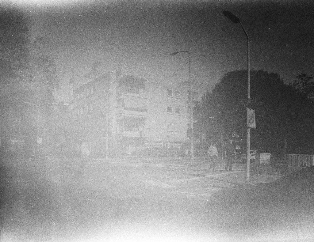 Die Rolle Fomapan 400, selbst entwickelt in Rodinal (alles sowieso schon ein sehr körniges Unterfangen), hat leider etwas Licht abbekommen, weil ich ein Teil vom Entwicklungstank vergessen hab. Trotzdem bin ich immer von der Abbildungsleistung meiner Mamiya fasziniert. Trotz Fomapan-400-Grütze, trotz 50mm-Weitwinkel (=25mm KB-Äquivalent) reicht das ganze noch, um diesen Vogel hier zu erkennen: